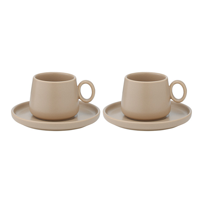 Набор из двух чашек с блюдцами бежевого цвета из коллекции essential, 120 мл