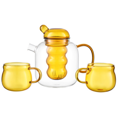 КаталогЧайник стеклянный с двумя чашками, 1,2 л, желтый