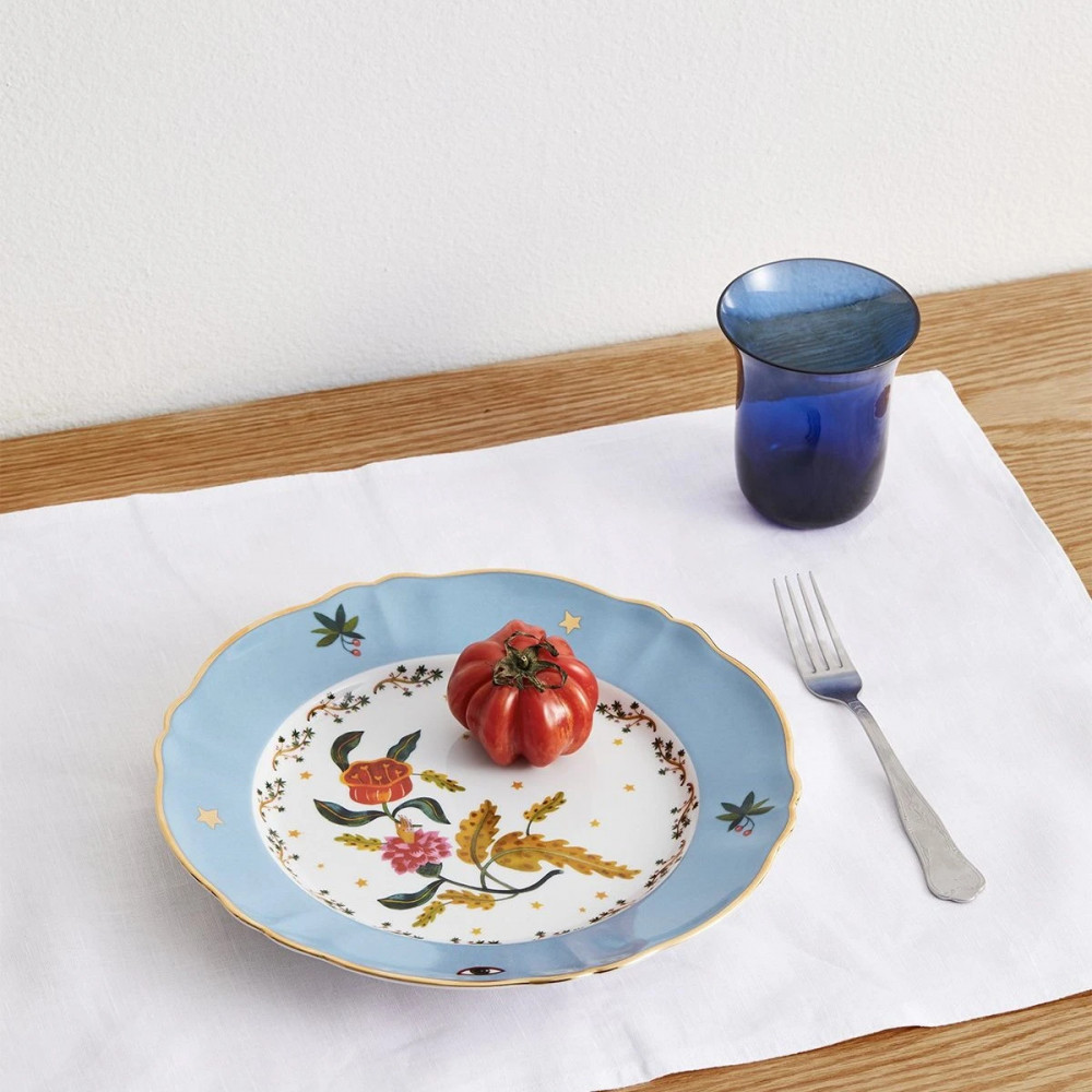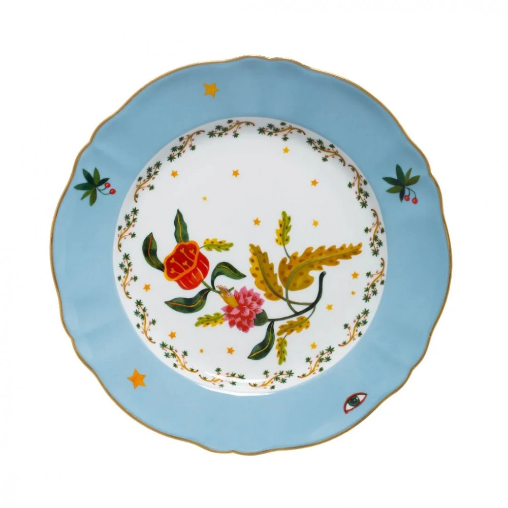 Обеденная тарелка FLORAL от итальянского бренда Bitossi из фарфора. Украшена золотом по краям и иллюстрацией с растительными мотивами.