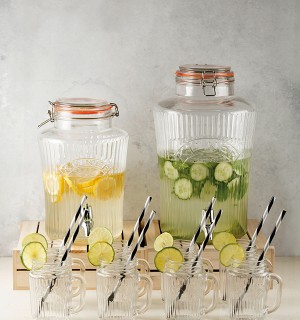 Уникальный дизайн и практичность продукции Kilner позволили завоевать сердца домохозяек по всему миру. Банки и бутылки Kilner пользуется успехом вот уже почти 200 лет. В коллекции также представлены диспенсеры для прохладительных напитков, банки-кружки, стаканы, аксессуары и наборы для хранения и приготовления продуктов, ланчей с собой и сервировки.