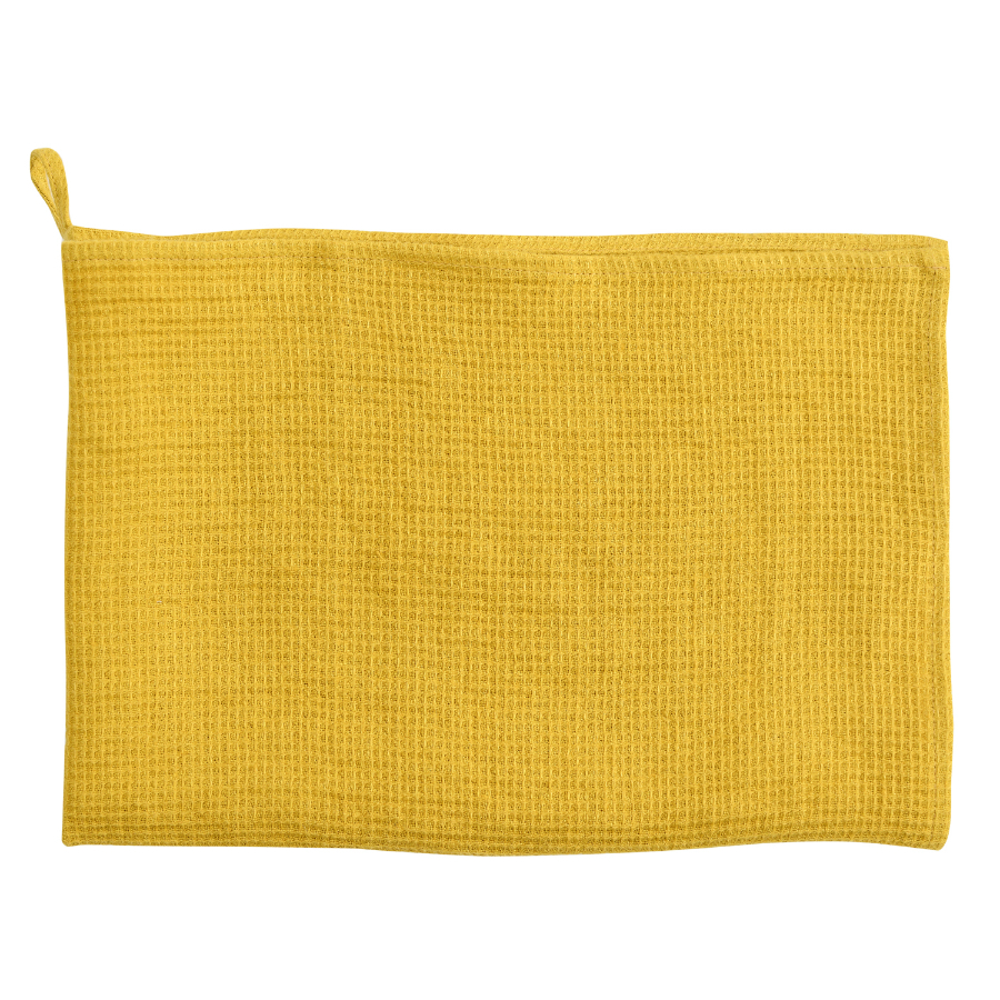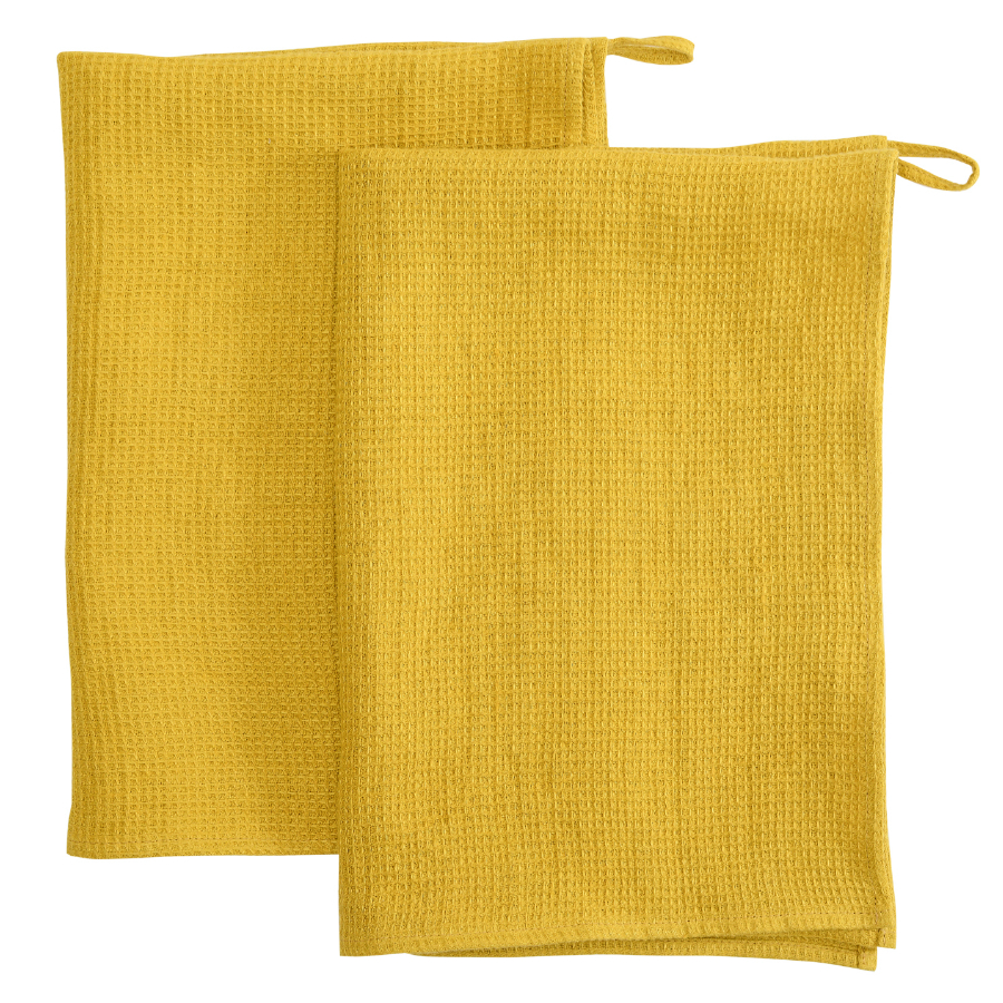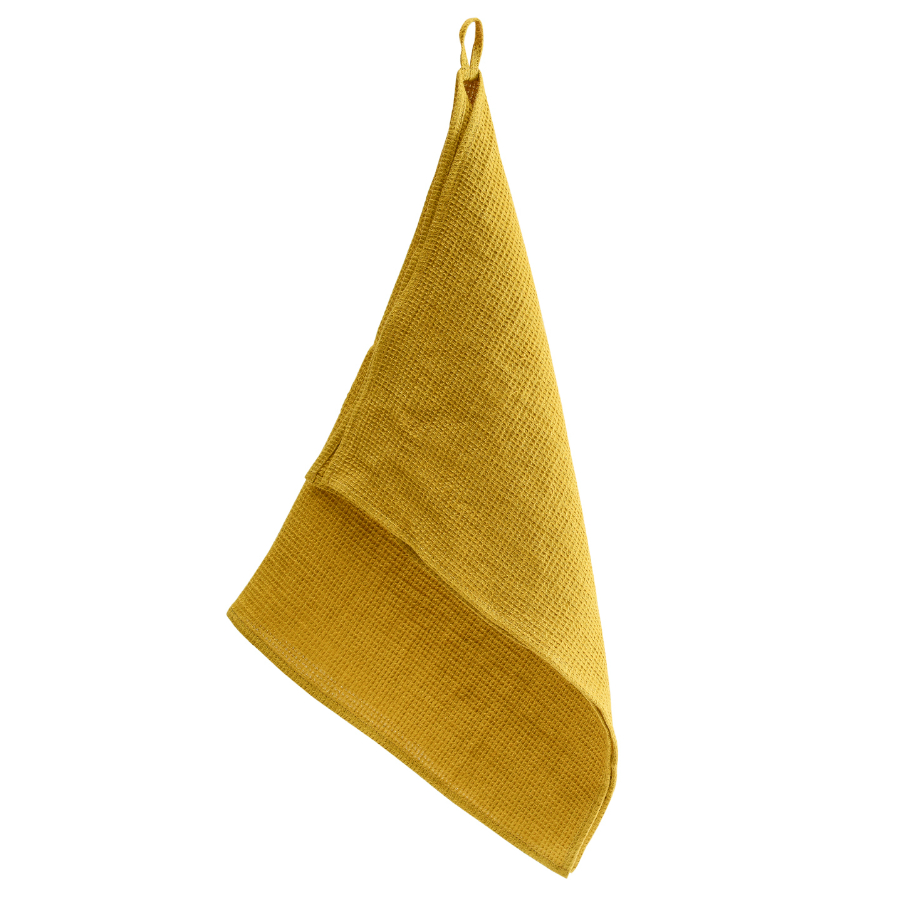 Полотенце кухонное вафельное из умягченного льна горчичного цвета из коллекции essential, 47x70 см
